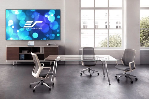 De Elite Screens AR110H-CLR3 (16:9) 247 x 140 is een randloos projectiescherm. Hierdoor ziet hij er strak uit in je interieuw. Het scherm is gemaakt van speciaal Ceiling Light Rejecting materiaal. Dankzij dit materiaal zien je beelden er zelfs helder uit als er plafondverlichting aan staat. Bovendien zorgt het voor een groot contrast. Hierdoor zijn de details van je beelden goed zichtbaar. Het scherm is ontworpen voor short throw beamers. Dit betekent dat je op korte afstand een groot beeld projecteert, bijvoorbeeld in de huiskamer. Het scherm is 247 centimeter breed en 140 centimeter hoog.