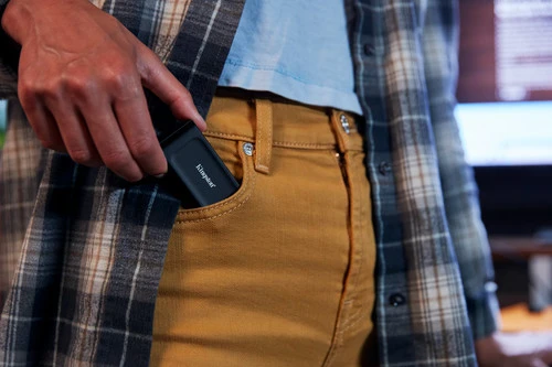 Door het kleine formaat past deze SSD gemakkelijk in je broekzak, jaszak of rugzak.