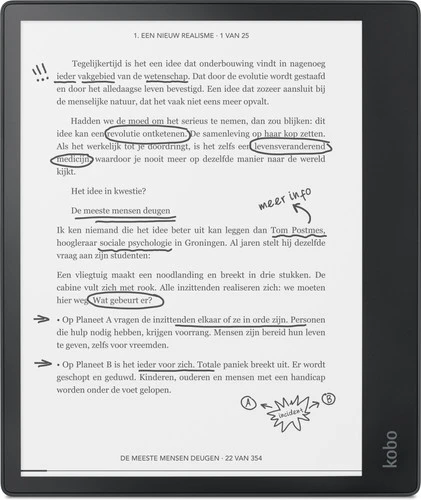 Met de meegeleverde stylus maak je aantekeningen terwijl je leest.