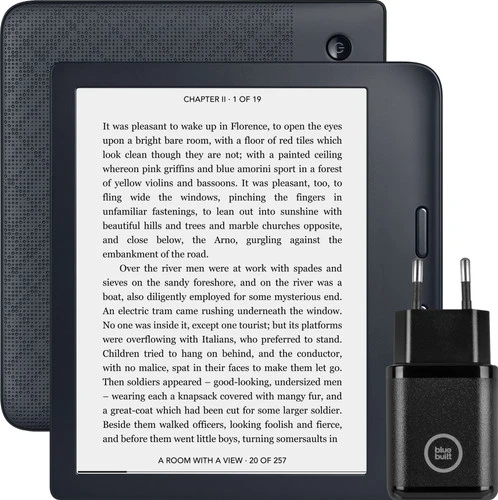 Je laadt je e-reader op met de Kobo Libra 2 Zwart + BlueBuilt Oplader. Dankzij de ergonomische handgreep houd je de e-reader gemakkelijk langere tijd vast. Je leest zelfs op het strand of aan het zwembad, want de Libra 2 heeft een waterdichte behuizing. Kobo heeft ook aan het comfort van je ogen gedacht. Het 7 inch scherm filtert namelijk blauw licht en past de helderheid en kleurtemperatuur automatisch aan op basis van je omgevingslicht. Met de meegeleverde oplader en kabel laad je je e-reader op.
