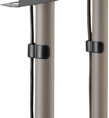 De standaard ziet er strak uit door het ingebouwde kabelbeheersysteem en apparaatopslag.