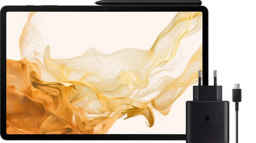 Je laadt de tablet met de 45W snellader binnen 2 uur weer volledig op.