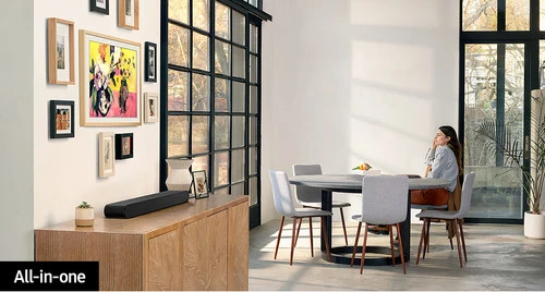 Met Q-Symphony werkt het geluid van je tv en soundbar samen, zodat je diepte in geluid hoort.