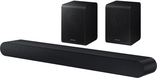 Je hoort overal om je heen geluid met de set van soundbar en achterspeakers.