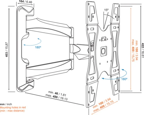 Dankzij de ruime draaicirkel richt je de tv gemakkelijk naar iedere plek in de kamer.