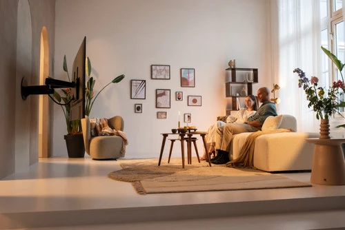 Dankzij de ruime draaicirkel richt je de tv gemakkelijk naar iedere plek in de kamer.