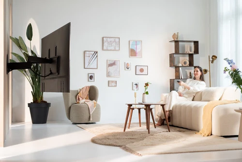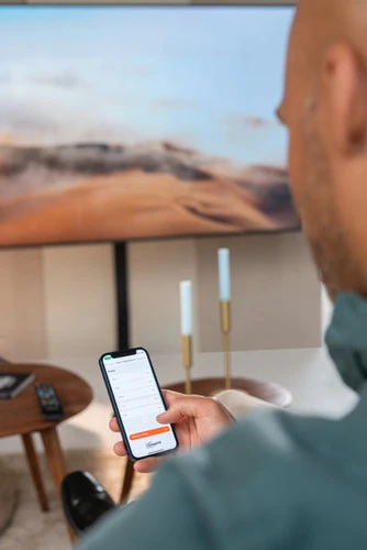 Je bestuurt deze tv beugel met de afstandsbediening, de app of je stem zodat je niet op hoef te staan.
