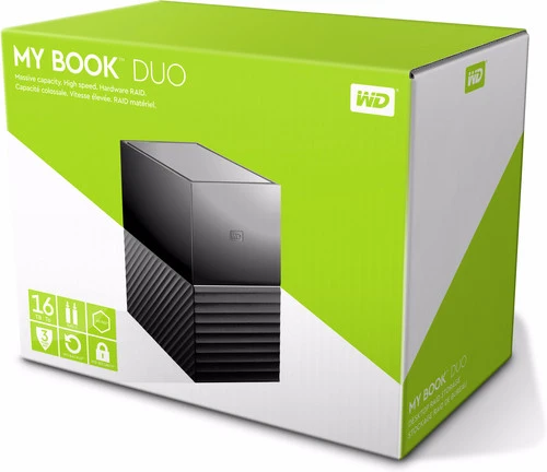 De WD My Book Duo 16TB is een extern desktop opslagapparaat voor creatieve professionals en intensieve mediagebruikers. De 2 ingebouwde WD Red schijven zijn speciaal gemaakt voor RAID-opstellingen. Daardoor maken ze een back-up van elkaar en voorkom je gegevensverlies. Bewaar je projecten, videobestanden, fotobibliotheken of systeemkopieën extra veilig. Verbind de schijf dankzij de usb c poort of via de 2 usb a poorten. Gebruik de WD My Book Duo als usb hub als je nog een usb poort over hebt. Dankzij 256-bit AES encryptie is de WD My Book Duo beschermd tegen virussen of andere internetaanvallen. Bovendien stel je een wachtwoord in om toegang te krijgen tot je bestanden.